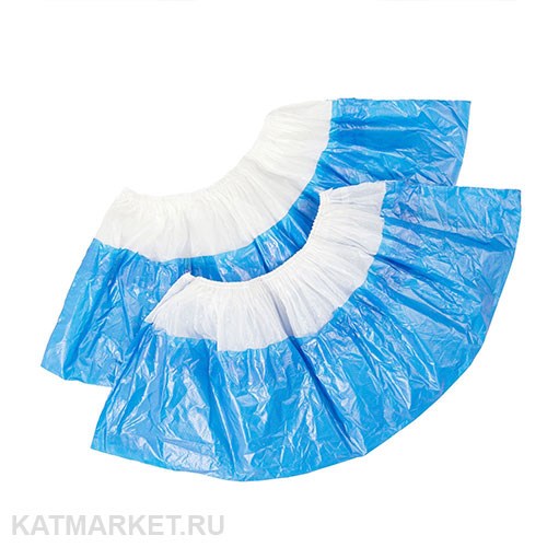 Бахилы Premium бело-синие с двойной подошвой 100шт
