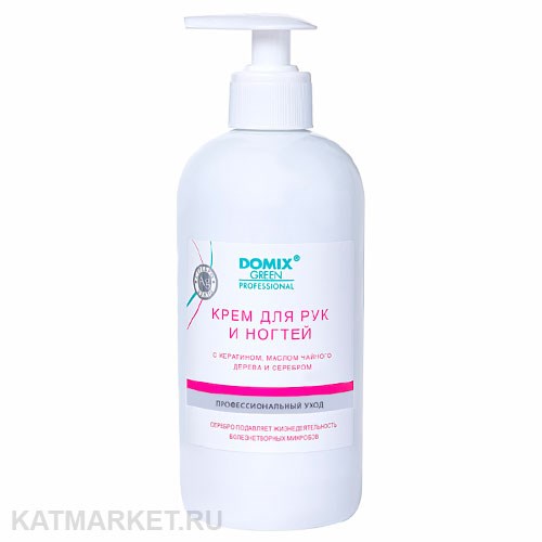 Domix 500мл Крем для рук и ногтей с кератином, маслом чайного дерева и коллоидным серебром (102638)