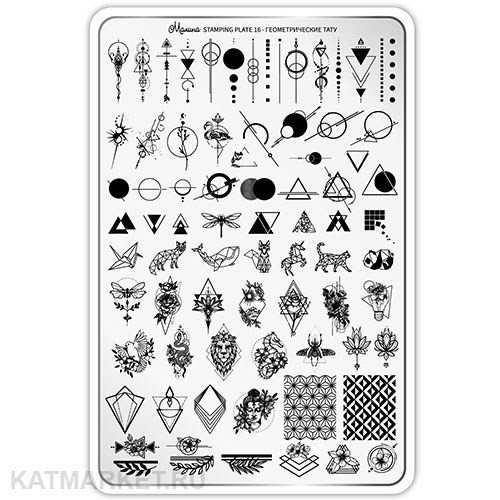 Малина Пластина для стемпинга 16 "Геометрические тату" (+ демолист)