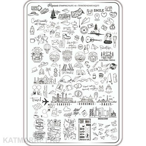 Малина Пластина для стемпинга 45 "Приключения ждут!" (+ демолист)