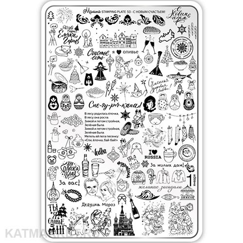 Малина Пластина для стемпинга 50 "С Новым Счастьем!" (+ демолист)