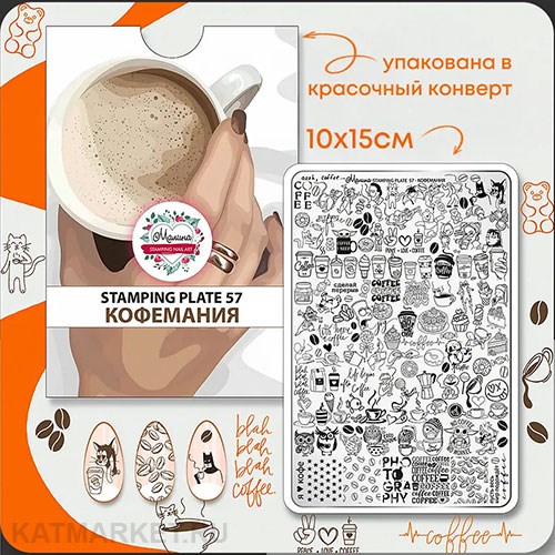 Малина Пластина для стемпинга 57 "Кофемания" (+ демолист)
