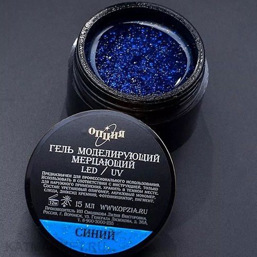 Опция Гель моделирующий самовыравнивающий мерцающий Синий 15мл