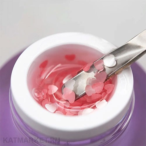Lovers - прозрачный гель с розовыми и глянцевыми белыми сердцами;