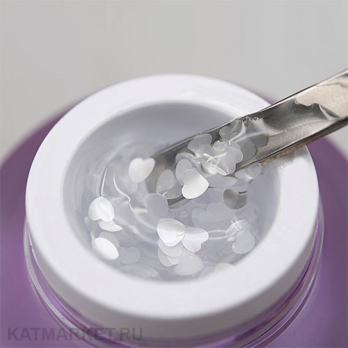 Crush - прозрачный гель с фиолетовыми и матовыми белыми сердцами;