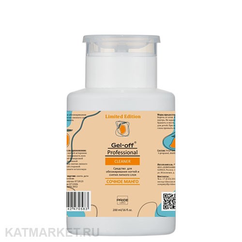 Pride 200мл Средство для обезжиривания ногтей и снятия липкого слоя, Сочное манго с помпой