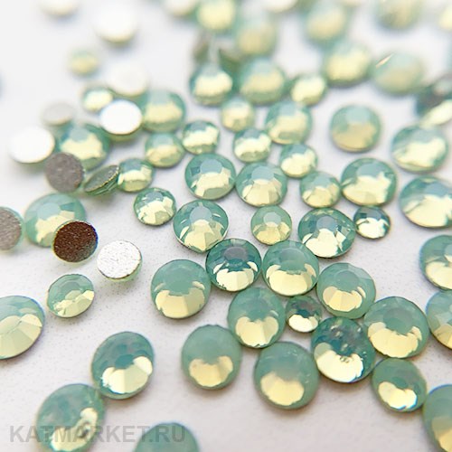 Стразы Опал разноразмерные в баночке 100шт зеленые