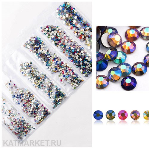 Стразы разных размеров пакет 1600шт, Мульти Голография