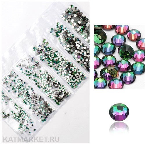 Стразы разных размеров пакет 1600шт, Зеленый Хамелеон