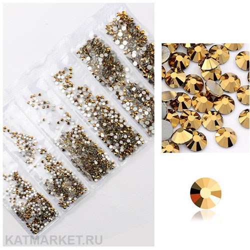 Стразы разных размеров пакет 1600шт, Золото металлик