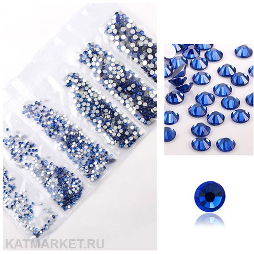 Стразы разных размеров в баночке, Синие
