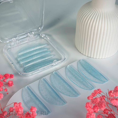 Валики для ламинирования ресниц, голубые с блестками, 5 пар