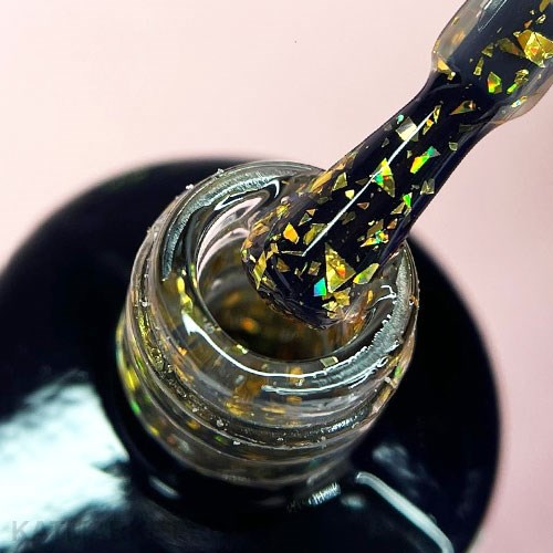 Завершающее покрытие прозрачное с декоративными элементами. Имеет среднюю консистенцию. Самовыравнивается. Топ устойчив к царапинам, обладает отличным глянцем и сохраняет его отт коррекции до коррекции.